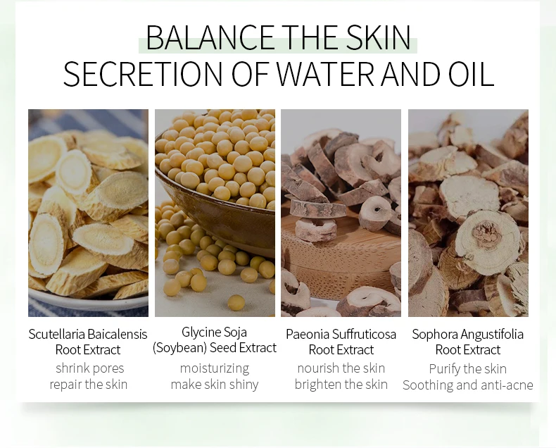 Основные ингредиенты: экстракт семян глицина сои (СОИ), экстракт корня Scutellaria Baicalensis, экстракт корня паеонии sufruticosa, экстракт корня софоры ангустифолии, салициловая кислота
