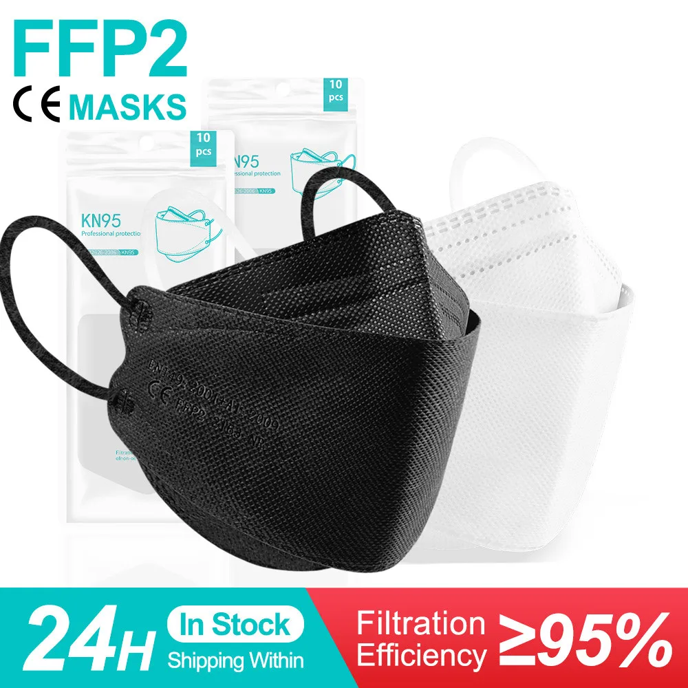 Бело-черная маска FPP2 Homologada 4-слойная маска для взрослых FFP2 маски-кариллы KN95 Корейская FFP2mask сертифицированная маска FP2 в форме рыбы
