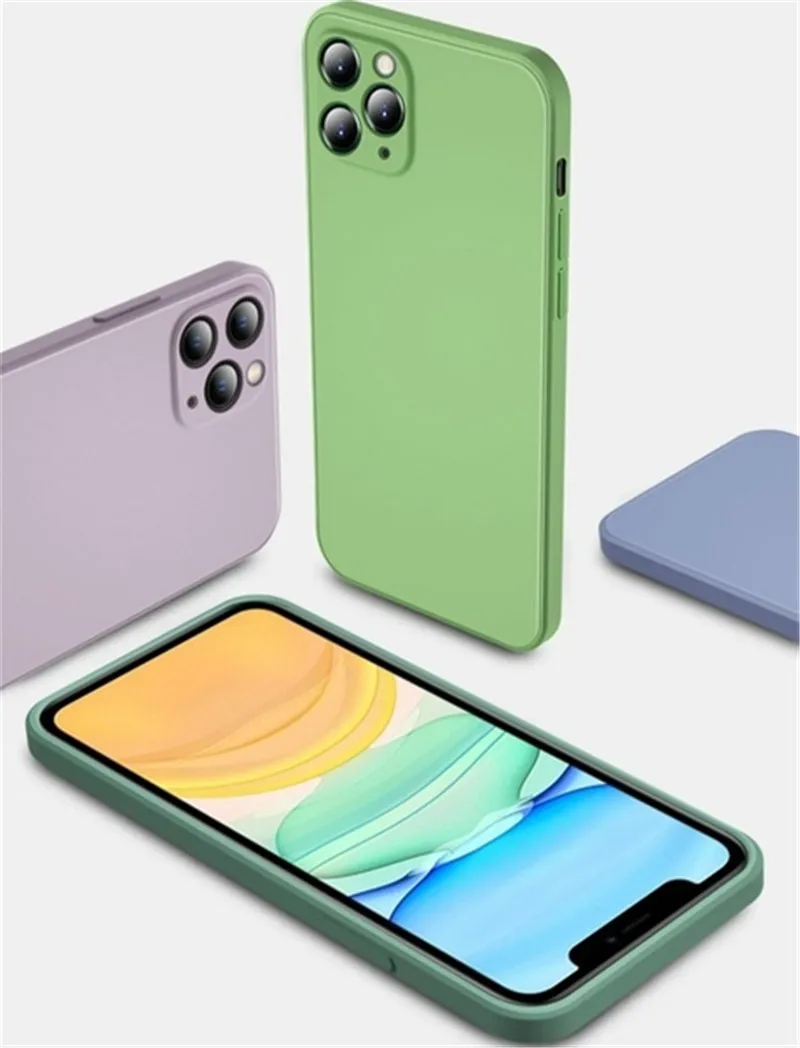 Модный жидкий силиконовый чехол с прямыми краями для iPhone 11 12 1...