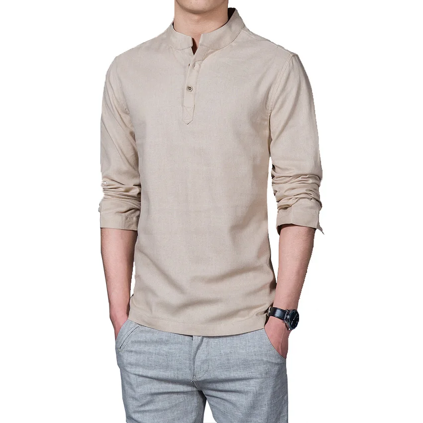 Для мужчин рубашка плотная Повседневное льняные рубашки Slim Fit с воротником-стойкой и M-5XL футболка с длинными рукавами для Для мужчин