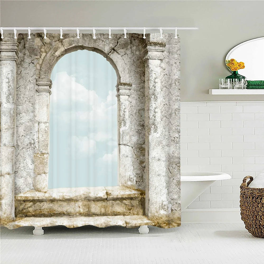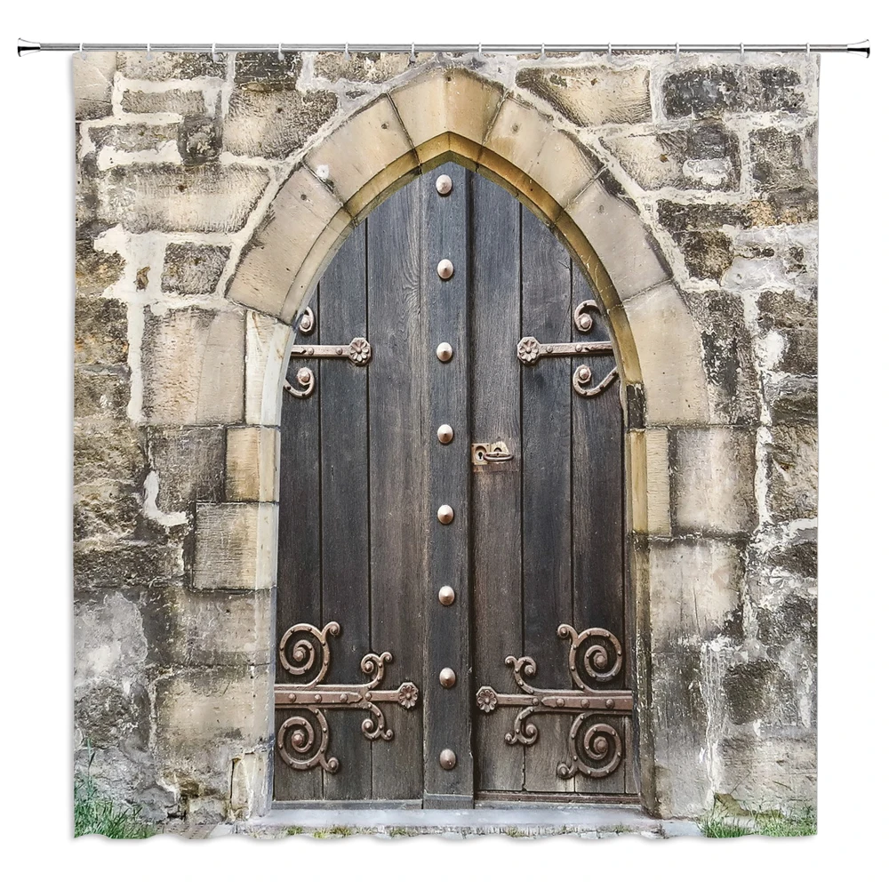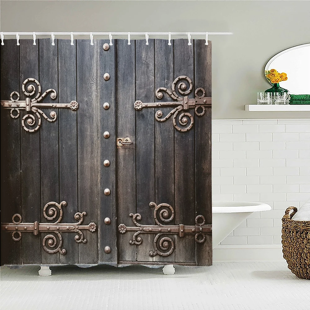 Ретро старая дверь кирпичная стена Декорации для ванной занавеска водонепроницаемая ткань занавеска для душа s винтажный Стиль Ванна экран для ванной Декор
