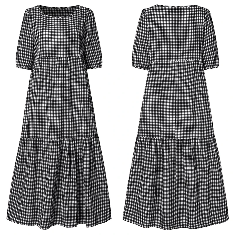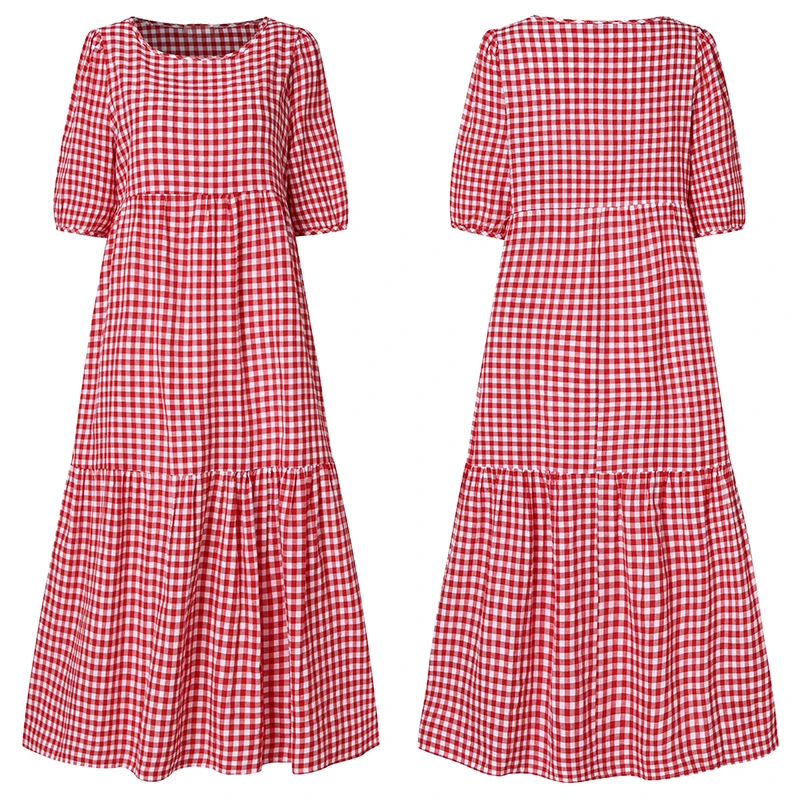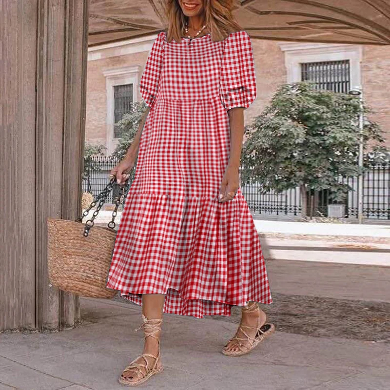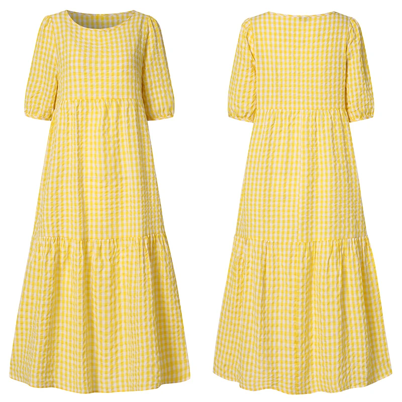Женский Повседневный Сарафан в клетку, свободное плиссированное платье до середины икры, праздничное платье с рукавом до локтя, лето 2022