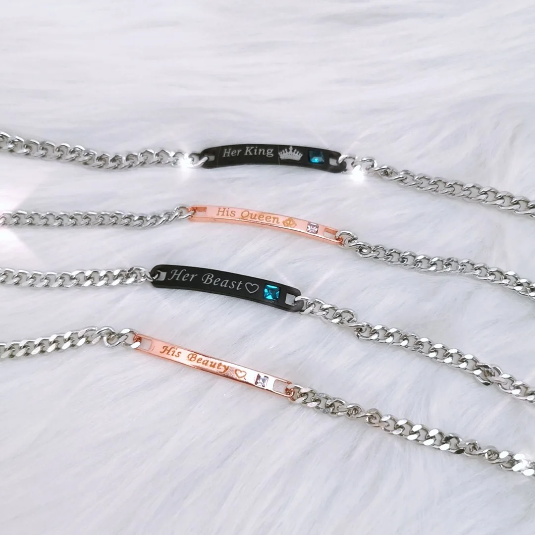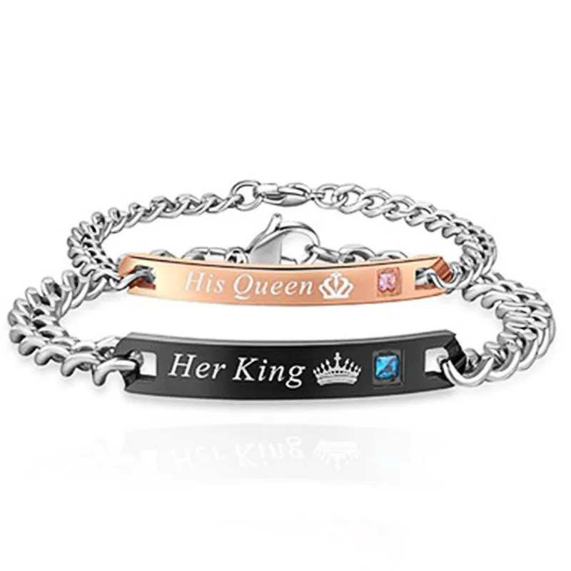 Ювелирные изделия Милая модная пара из нержавеющей стали браслеты из нержавеющей стали король его королева письма персональные браслеты специальный подарок для влюбленных