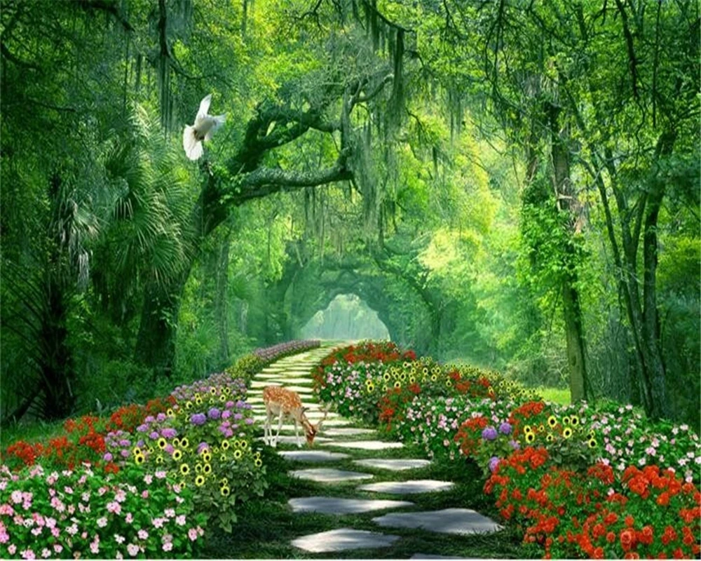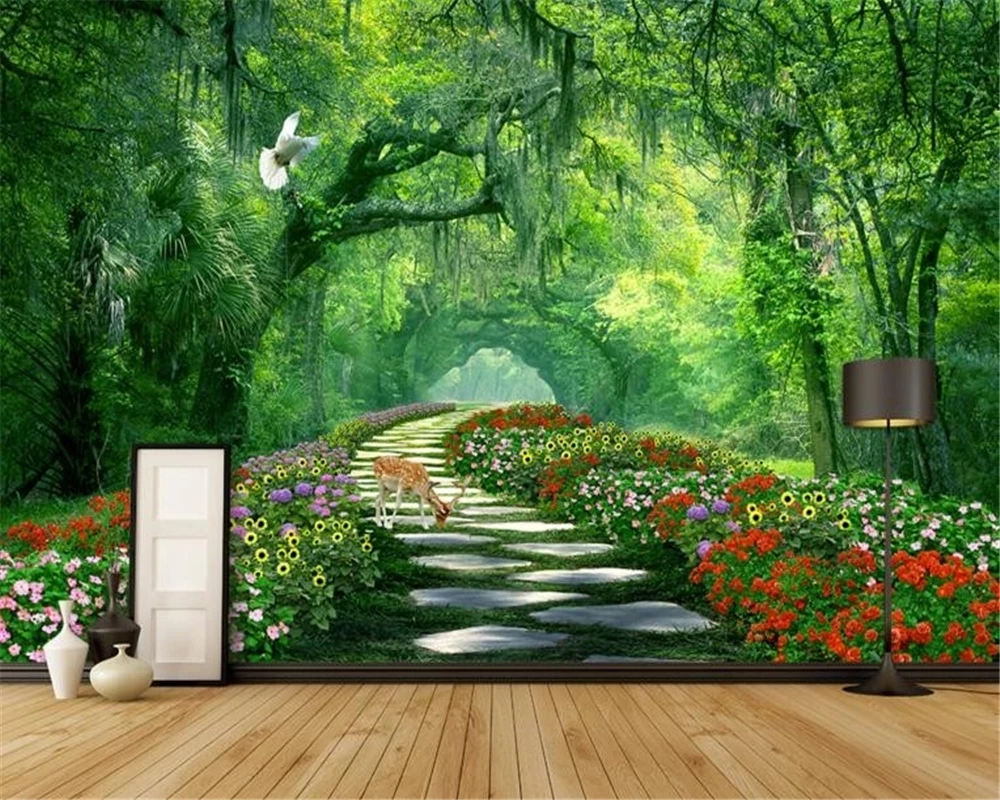 Самоклеящиеся обои на заказ, 3D, для гостиной, спальни, леса, парка, тени, дорожный пейзаж, фон, настенная живопись, декоративные фрески
