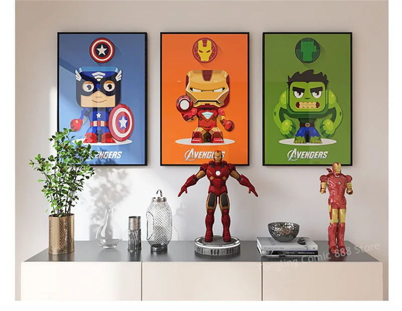 С героями комиксов Марвел, плакат супергероя Мстители холст картины...