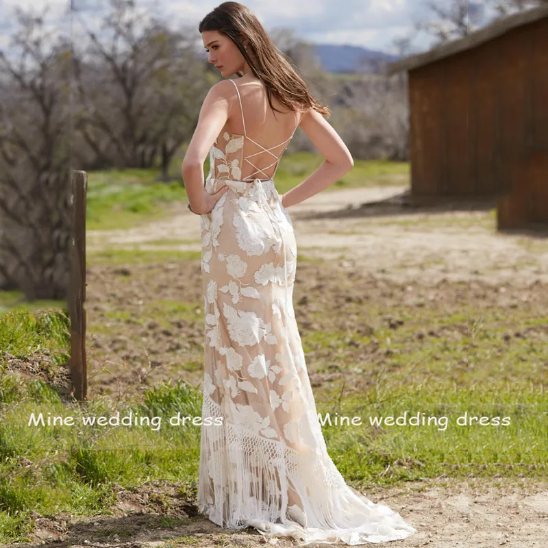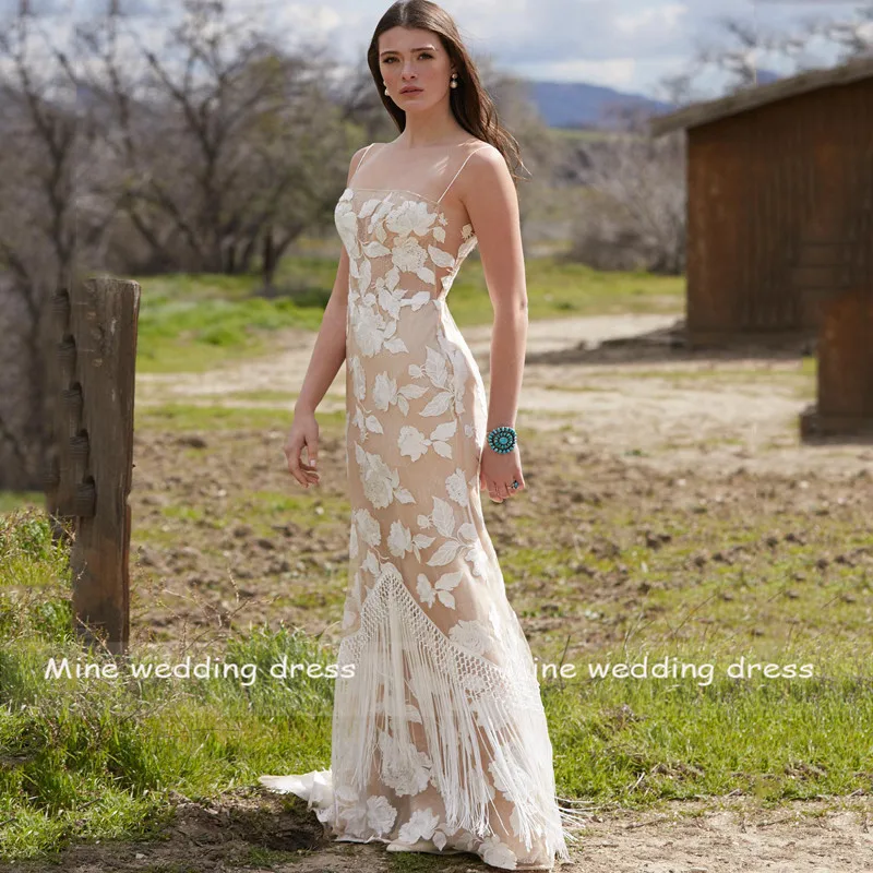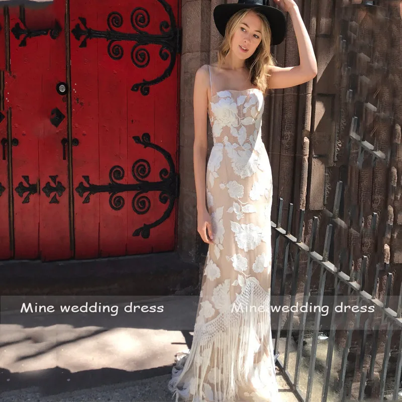Женское кружевное платье с открытой спиной, ТРАПЕЦИЕВИДНОЕ свадебное платье из фатина на тонких бретельках, модель 2021 года