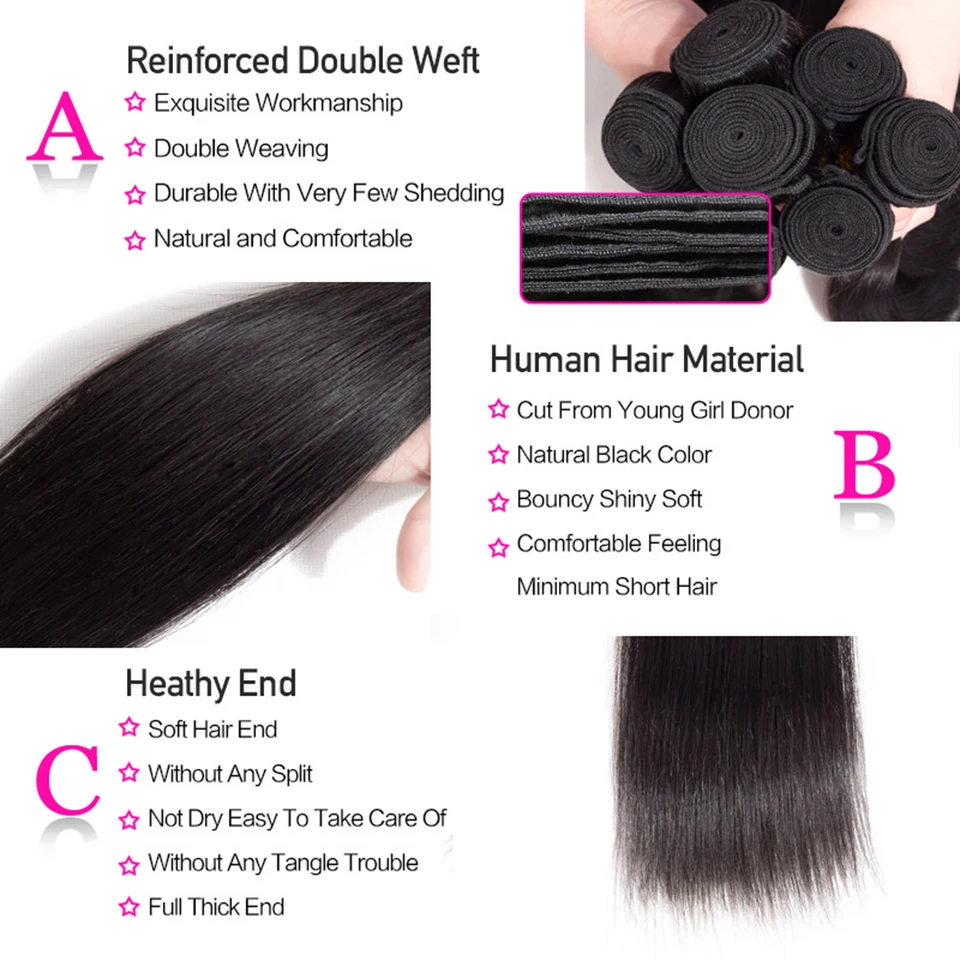 Пряпряди волос, прямые пупряди человеческих волос с косточками, пучки натуральных волос 36, 38, 40 дюймов, бразильские пучки волос для наращивания
