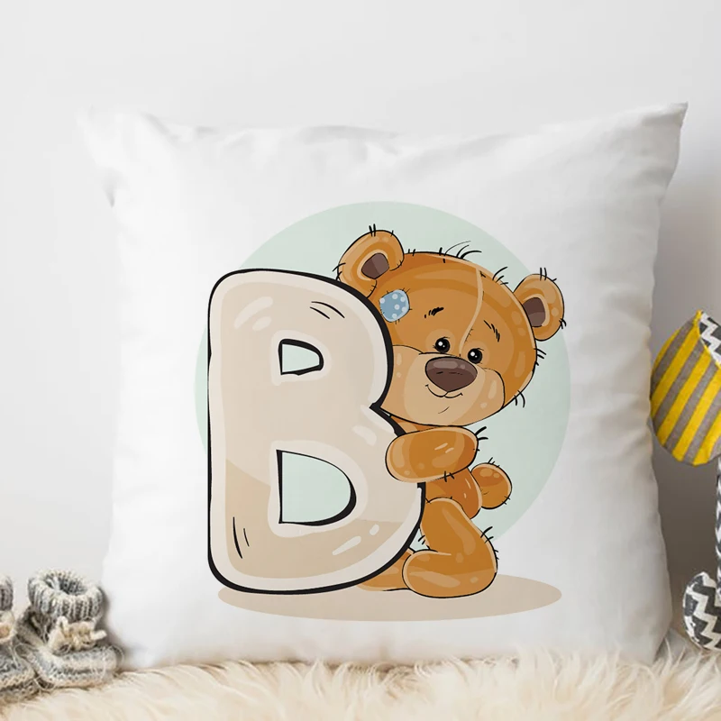 Милый мультяшный животный чехол для подушки для детской комнаты водный Цвет A-P принт с английскими буквами чехол для подушки мягкий чехол для подушки 45x45 см