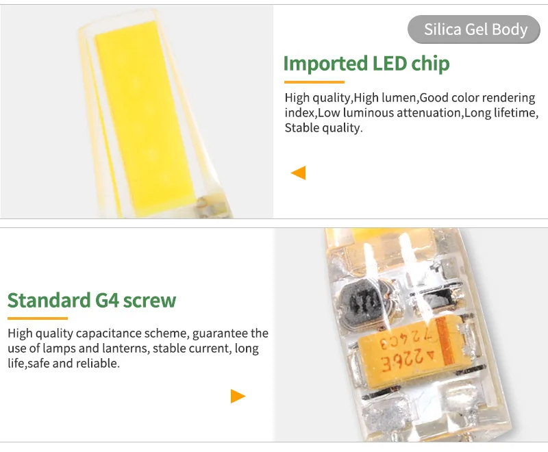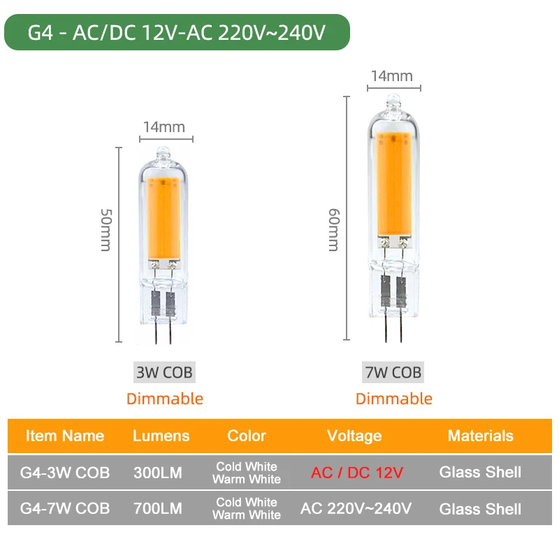 G4 мощность и Световой поток:5 Вт 500лм/7 Вт 700лм