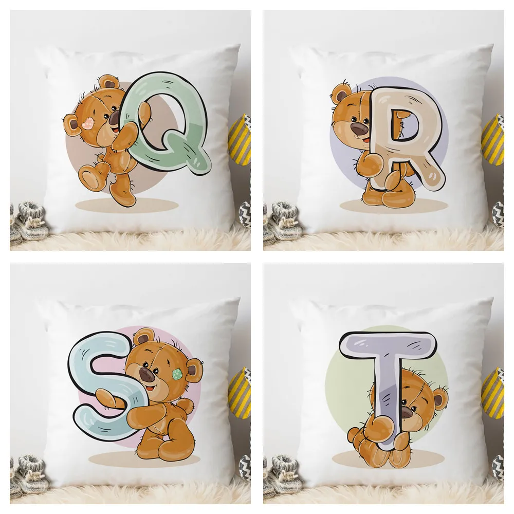 Милый мультяшный животный Чехол на подушку для детской комнаты водный цвет Q-Z принт с английскими буквами наволочка Мягкий Чехол на подушку 45х45см