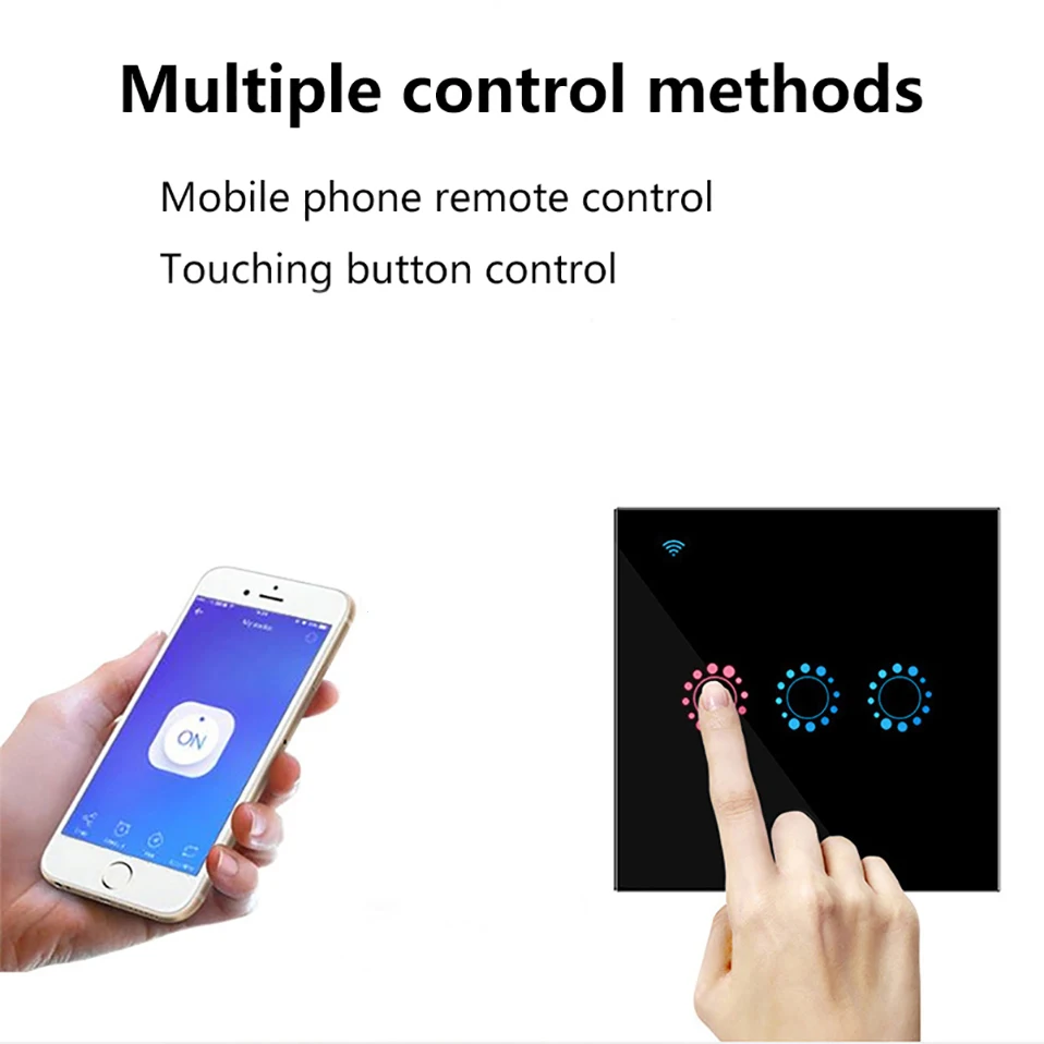 Переключатель имеет два способа управления: сенсорное управление и дистанционное управление смартфоном.