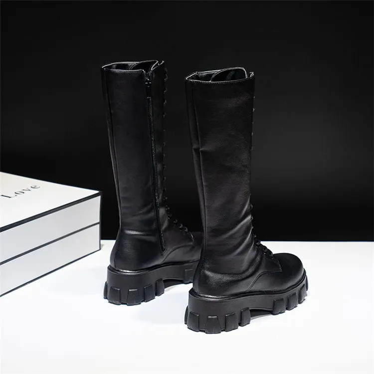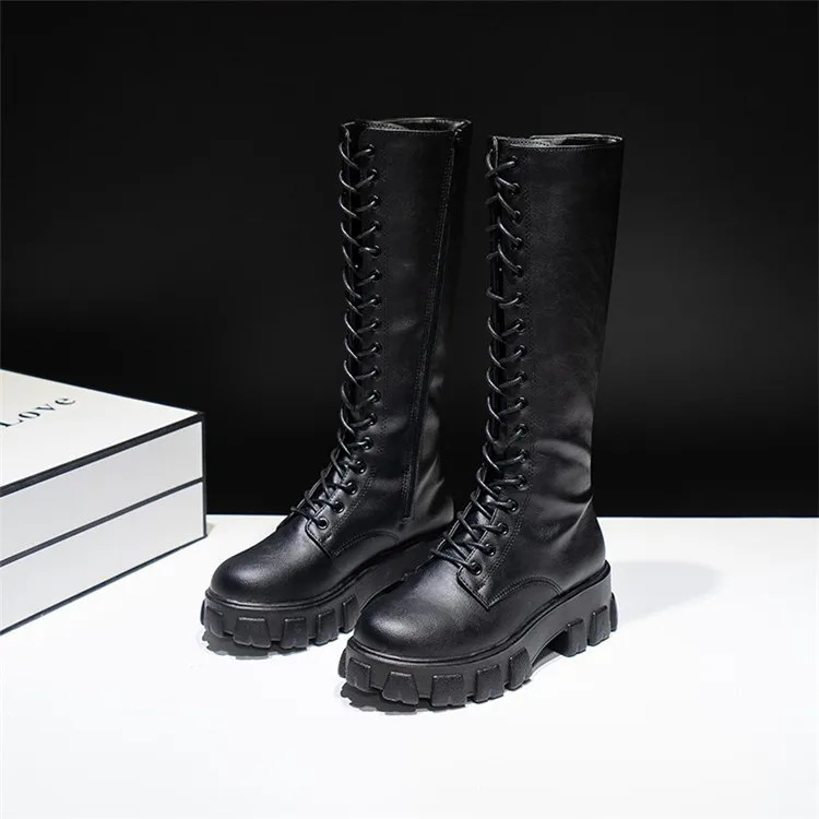 Ботинки женские, Осенние, рыцарские, на толстой подошве, со шнуровкой