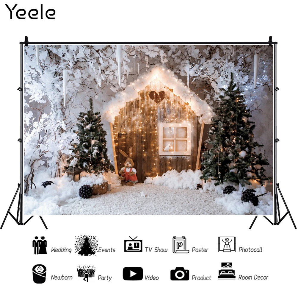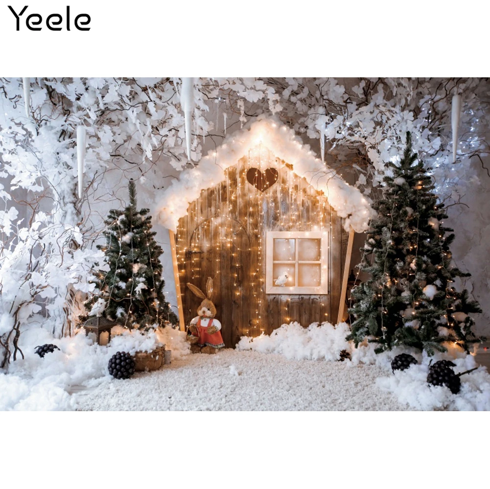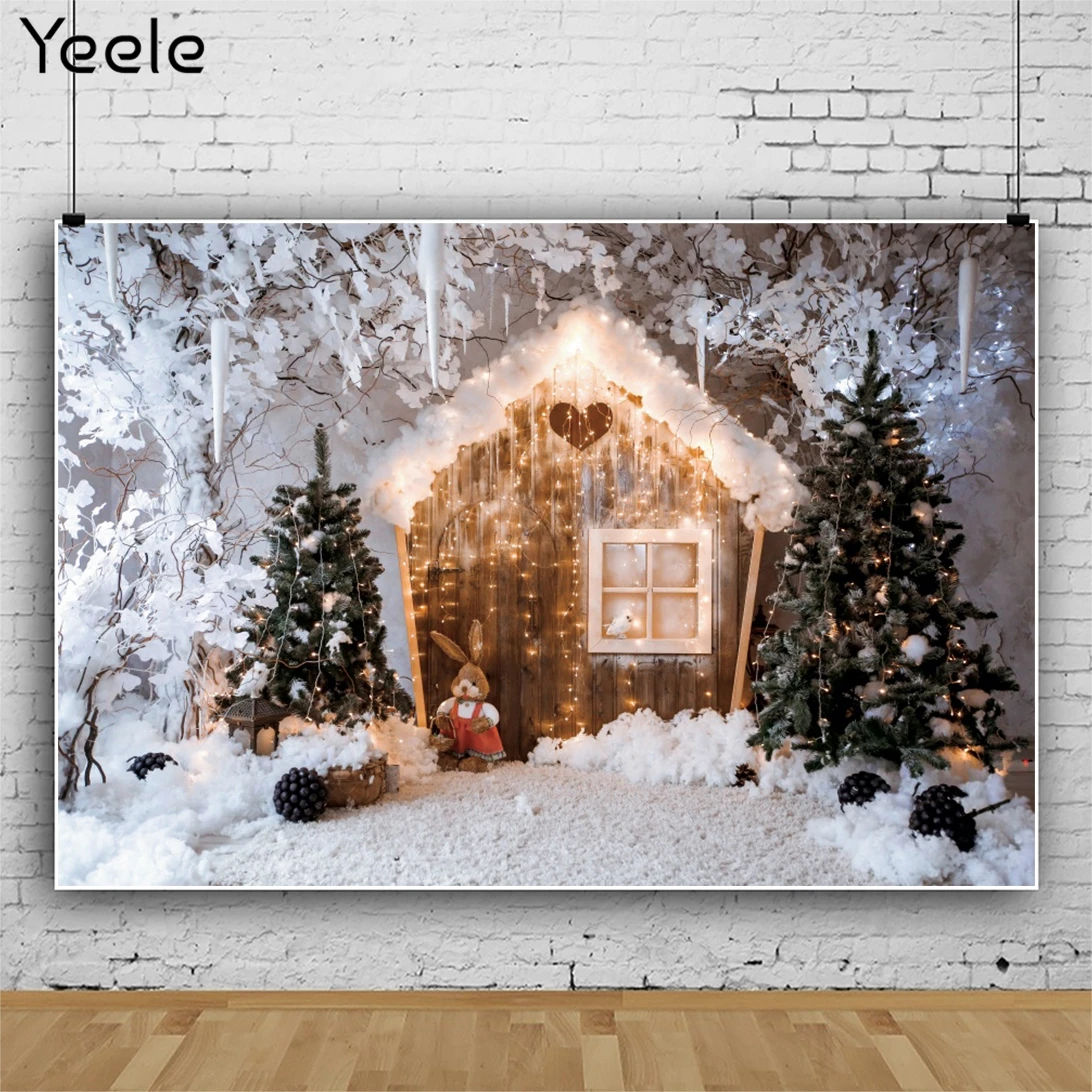 Фон Yeele для рождественской фотосъемки с изображением деревянного дома и блестящих огней снежного дерева