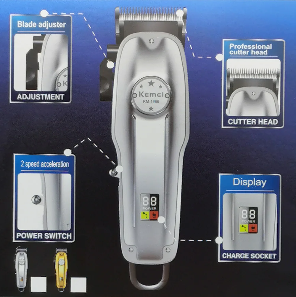 Профессиональная машинка для стрижки волос Kemei 1986 Alle Metalen Kapper, электрическая машинка для стрижки с ЖК-дисплеем