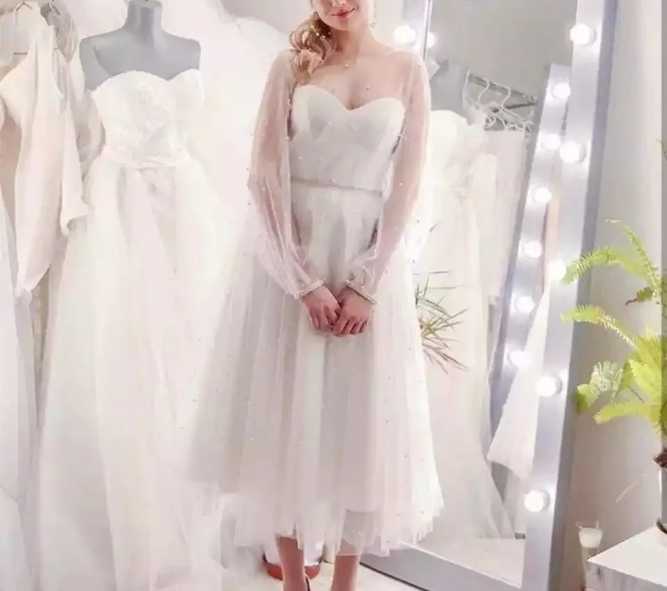 Пышное свадебное платье а-силуэт Свадебное платье 2022 рукава фонарики