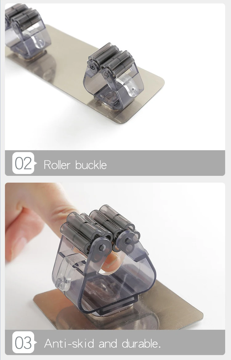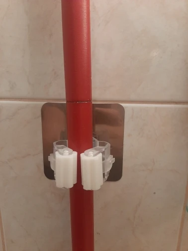 Клеются хорошо, держатся надежно, выглядят, как на фото продавца. Только я думала, что блестящая пластина металлическая, а это пластик, но на качестве изделия это никак не отражается. Удерживают даже тяжелую швабру. Рекомендую.