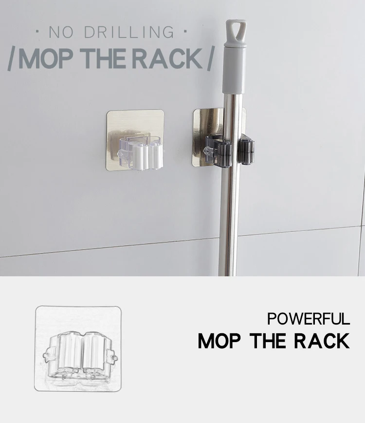 Многофункциональный держатель для швабры, настенный подвесной прибор без гвоздей, водонепроницаемая полка для кухни, ванной комнаты, не оставляет следов, крючки из вискозы