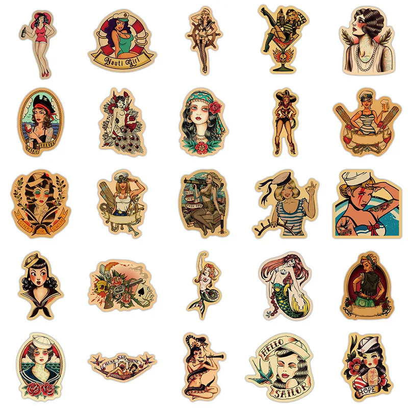 Наклейки в стиле ретро со старыми татуировками для школы, 2550 шт.,...
