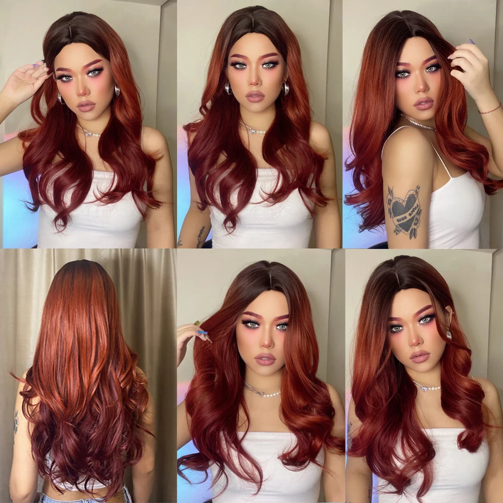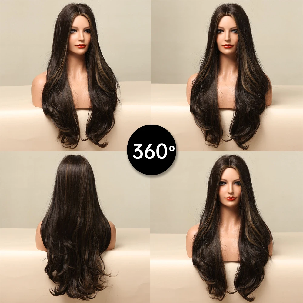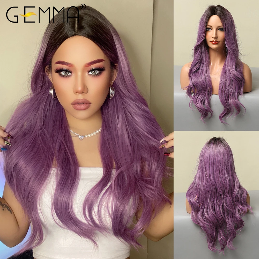 GEMMA длинные волнистые черные коричневые синтетические парики для женщин афро натуральные средней части косплей термостойкие искусственные волосы