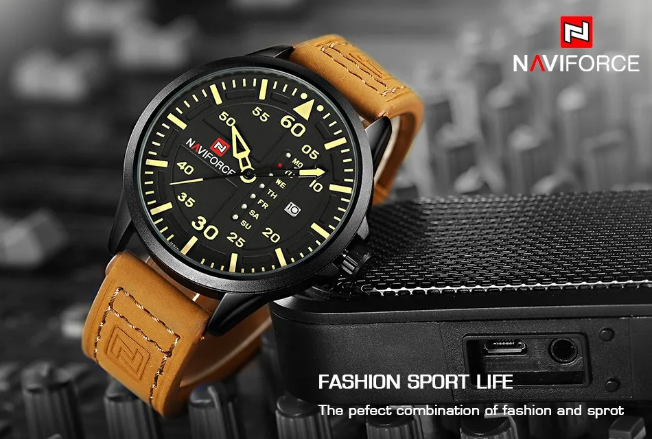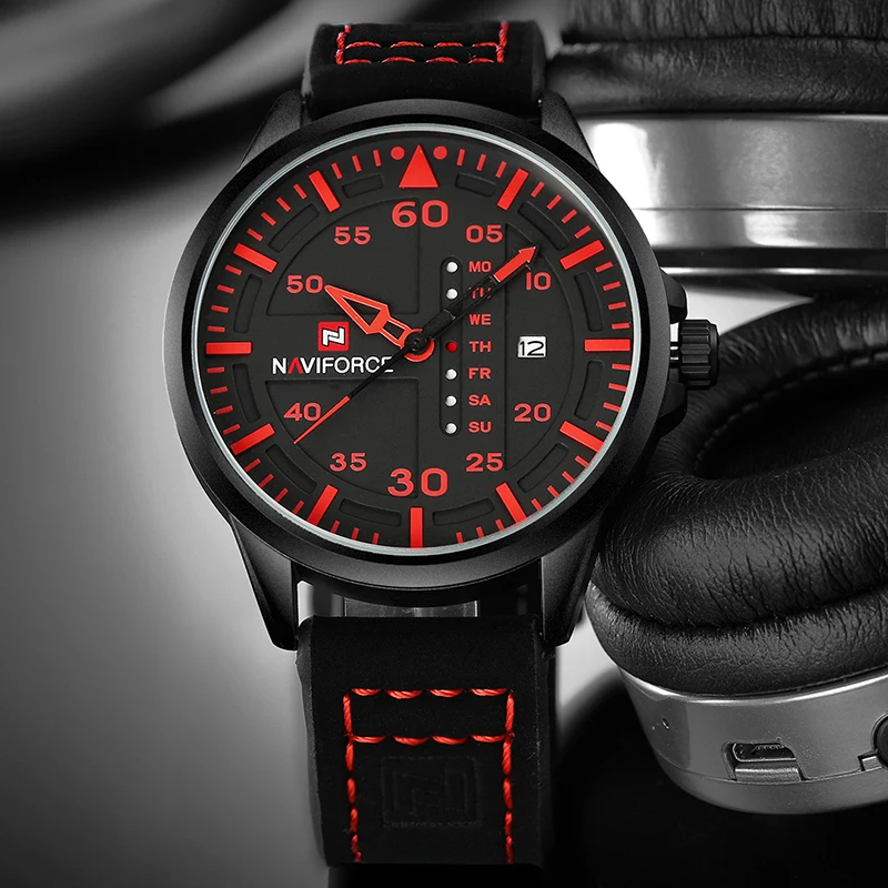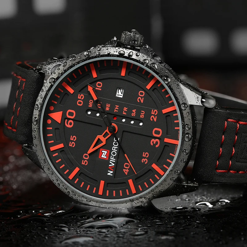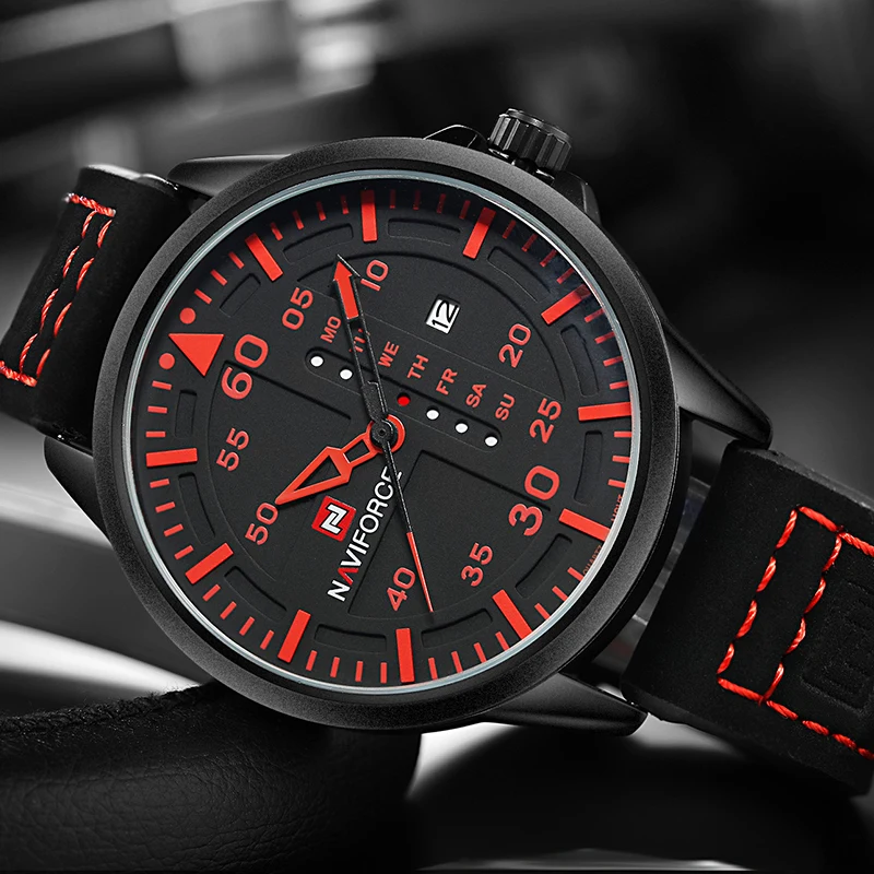Часы NAVIFORCE Мужские кварцевые с кожаным ремешком, повседневные, военные, спортивные