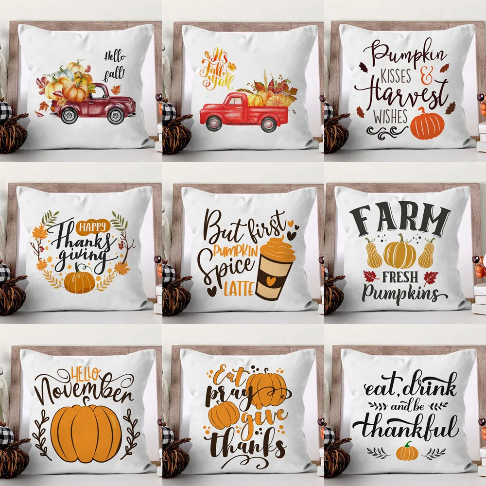 День благодарения, декоративная подушка для дивана Обложки Подушки напечатан тыквами для подушек 45x45 украшение дома из полиэстера Наволочки