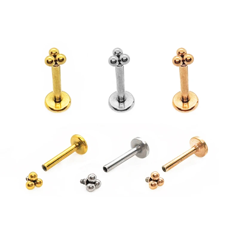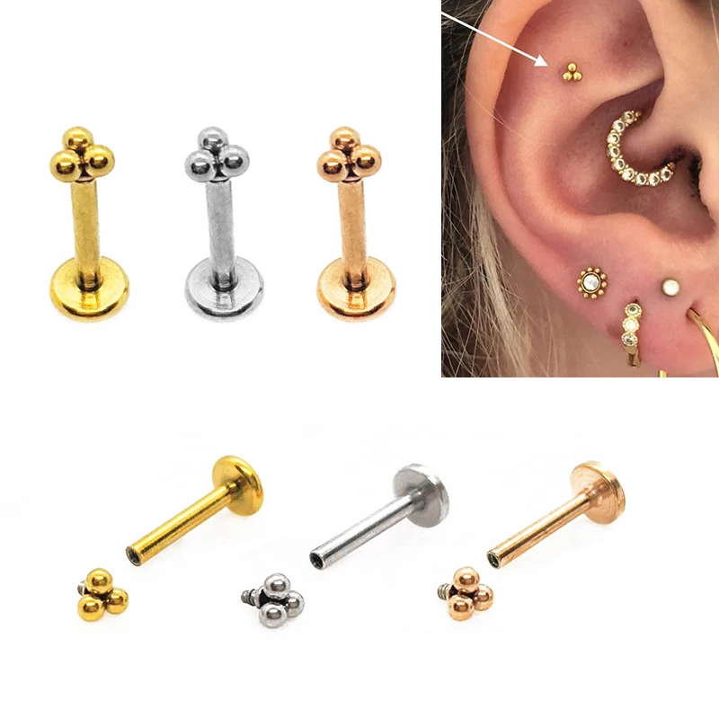 1 шт. Круглый Поддон Сталь trinity besd губная серьга с внутренней резьбой для пирсинга16g треугольной козелка Вперед спираль с плоской задней частью серьги