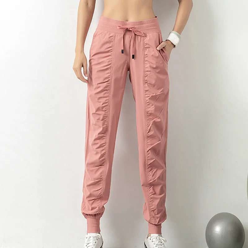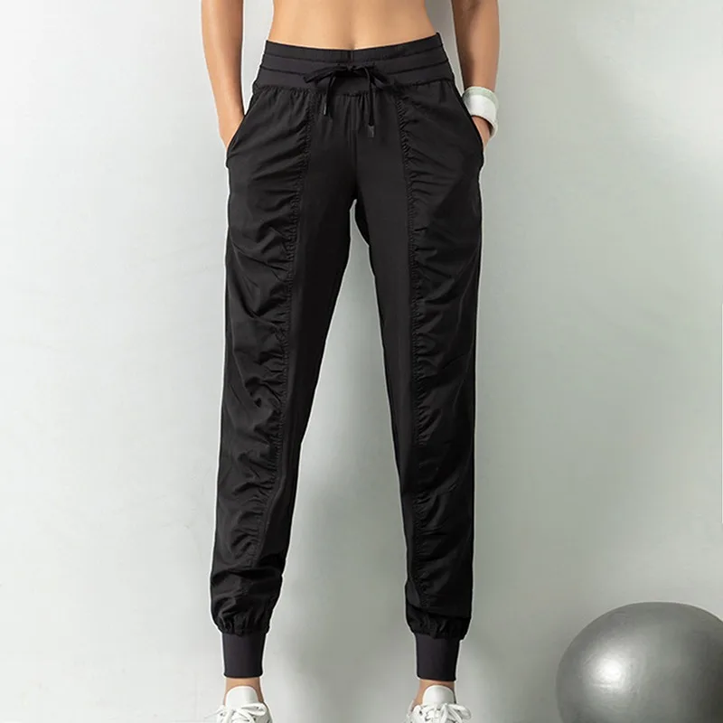 Женские спортивные Джоггеры со шнурком, быстросохнущие спортивные штаны для спортзала, фитнеса, с двумя боковыми карманами
