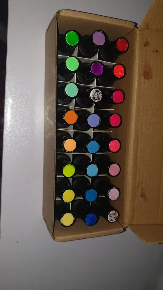 Очень красивые цвета и довольно разнообразные, но бутылки крошечные, очень, очень маленькие. И заказ прибыл очень быстро и в хорошем состоянии пакет, ни один не сломан, так как упаковка пластиковая