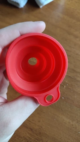 очень маленькая воронка и она резиновая, если моторное масло заливать через нее, то придется все это дело вымывать, при этом форму держит не очень - складывается гармошкой