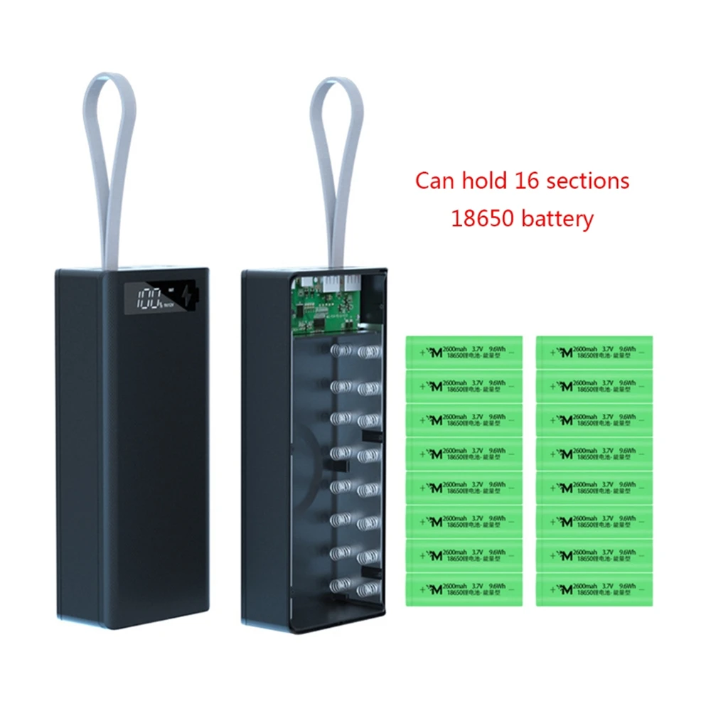 Съемный ЖК-дисплей, чехол для аккумулятора 16x18650, внешний корпус внешнего аккумулятора без аккумулятора 5 Вт, беспроводная зарядная коробка