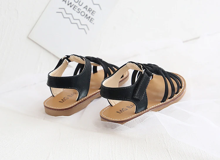 Детские сандалии в римском стиле, для мальчиков и девочек, черные, ...