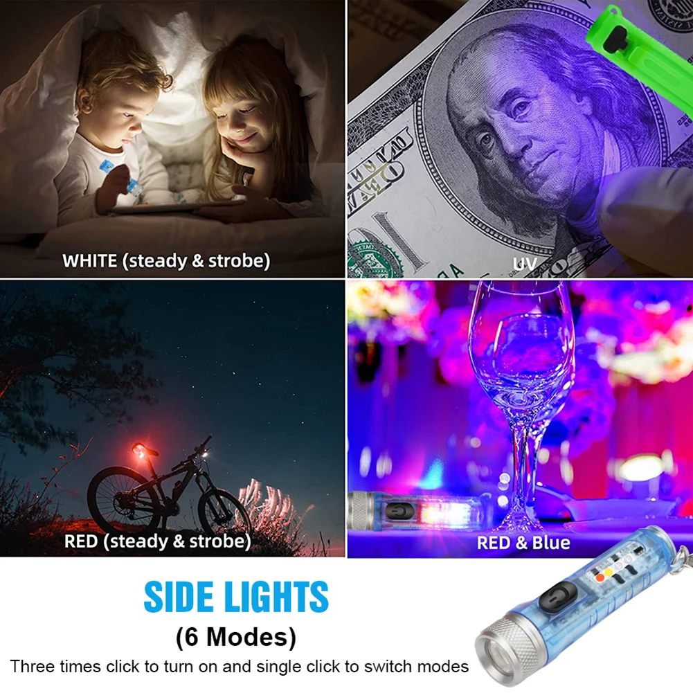 Мини брелок Карманный фонарь с пряжкой USB Перезаряжаемые EDC светодиодный светильник вспышки светильник Водонепроницаемый Портативный светильник для аварийного Открытый Отдых на природеХарактеристика:1. Маленький размер и светильник, поэтому он подходит для EDC.2. Его можно повесить на ключ, или его можно положить в карман, рюкзак или кошелек и т. д., что очень удобно.3. Он состоит из основного светильник и боковой светильник, с различными режимами светильник; Главный светильник (высокий светильник-средний Светильник-низкий светильник), боковой светильник (фиолетовый светильник, красный светильник, взрывная вспышка и т. д.).4. Время зарядки короткое, и срок службы батареи длинный. Для завершения зарядки требуется всего 35 минут, а дольше всего используется для 32 часов.5. Он очень подходит для активного отдыха, таких как Велоспорт, туризм, кемпинг и так далее.Спецификация:Материал корпуса: поликарбонатРазмеры: 6*1,5*1,3 см/2,36*0,59 * 0.51inЕмкость аккумулятора: 300 мАчВходное напряжение: 5 ВРабочая среда: -10C-40CИсточник: светильник SST20Время зарядки: 35 минВремя использования: 90 мин ~ 32 чУровень водонепроницаемости: IP65Вес нетто: 18 гТип зарядного порта: Зарядка типа CВходной ток: 500 мАВыдерживает падение: 1,5 мЦвет: белый, красный, синий, флуоресцентныйПримечание:В связи с различиями мониторов и эффектами освещения реальный цвет товара может немного отличаться от цвета на фотографиях. Спасибо!Возможны отклонения в 1-2 см вследствие измерений вручную.
