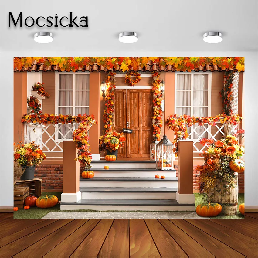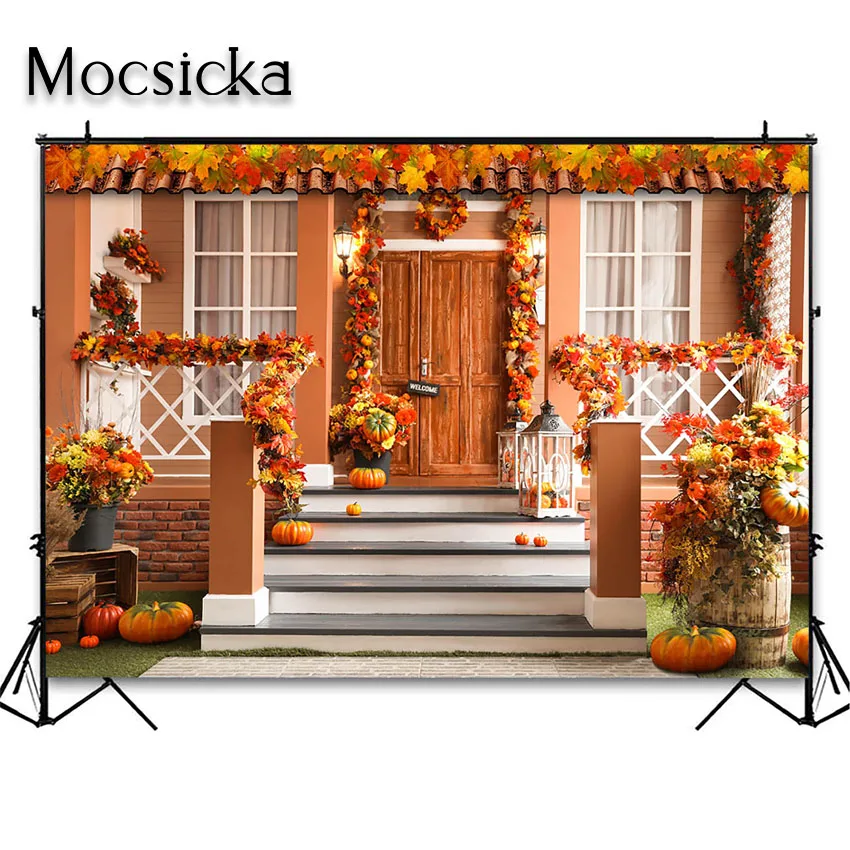 Фотофон Mocsicka осенний пейзаж Природы Деревянная Дверь День благодарения кленовые листья ребенок взрослый портрет фото фон