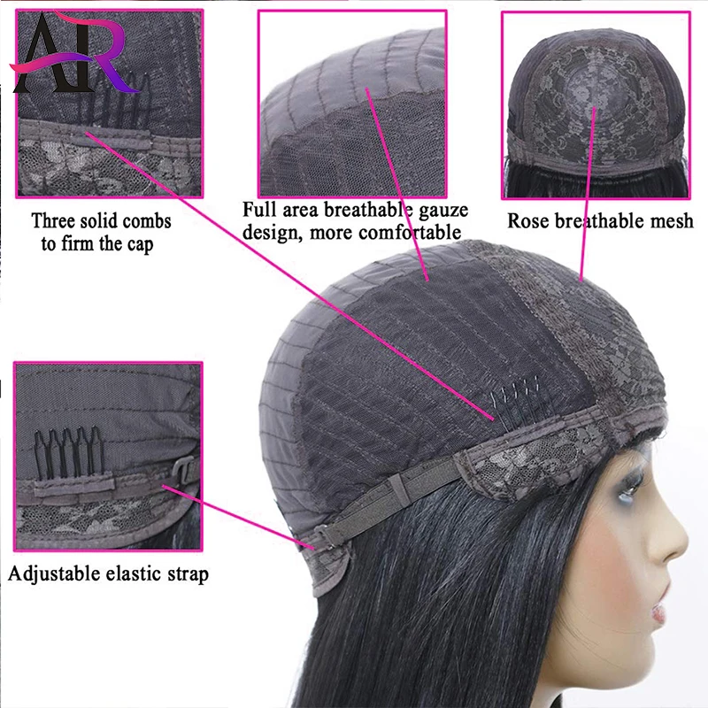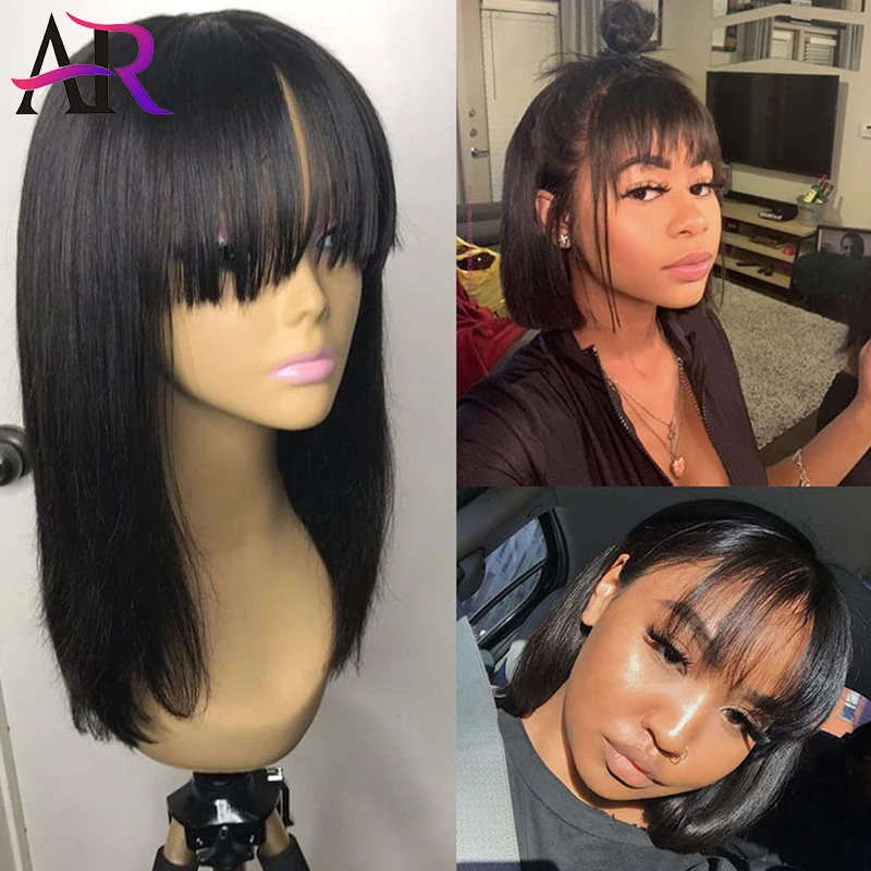Парики A R из прямых человеческих волос, с челкой, без шнуровки, полностью машинное изготовление, бразильские человеческие волосы Реми, для женщин, 16 дюймов