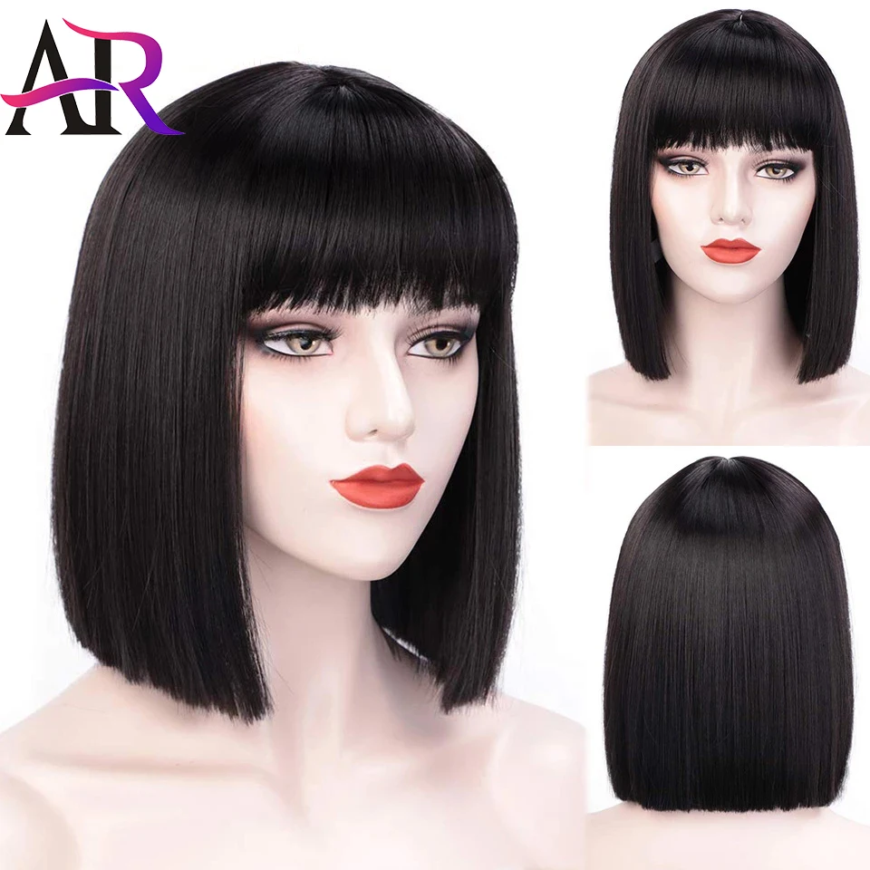 Парик короткий боб с челкой, прямые бразильские волосы, парик для ж...