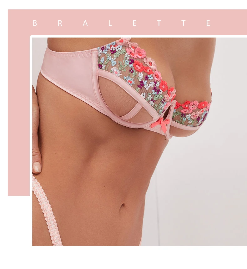 Сексуальный розовый кружевной комплект нижнего белья с вышитыми цветами и бюстгальтером