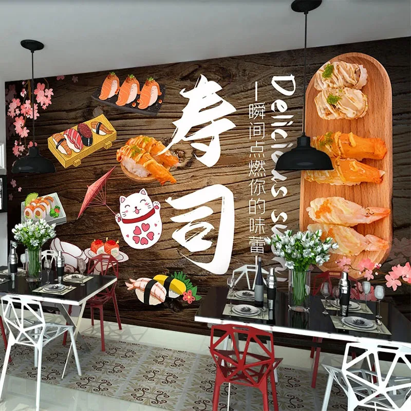 Пользовательские фотообои персонализированные деревянные доски суши оснащение фон Настенная роспись Ресторан снэк-бар Papel De Parede фрески