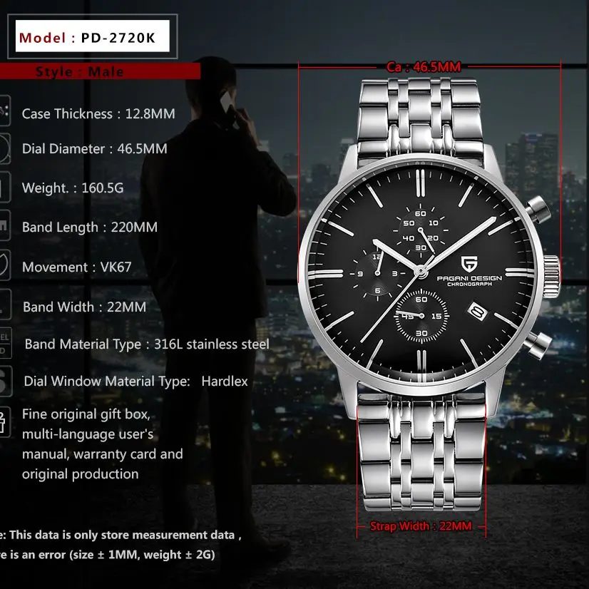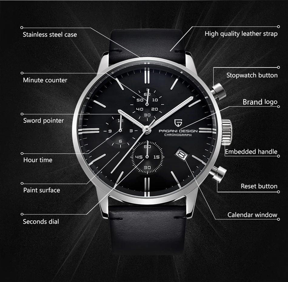 Наручные часы PAGANI Design Мужские, часы с сапфировым стеклом, Япония, Seiko VK67, модные, повседневные, водонепроницаемые, 30 м, с автоматической датой, кварцевые часы