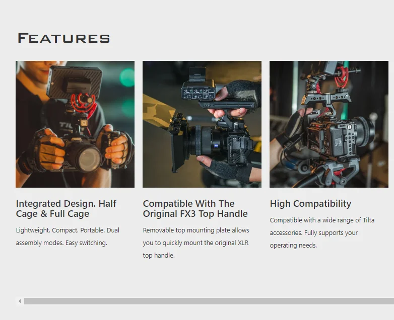 Клетка для камеры Sony FX3, тактическая серая, легкая, с верхней ручкой, базовая пластина TA-T13-FCC