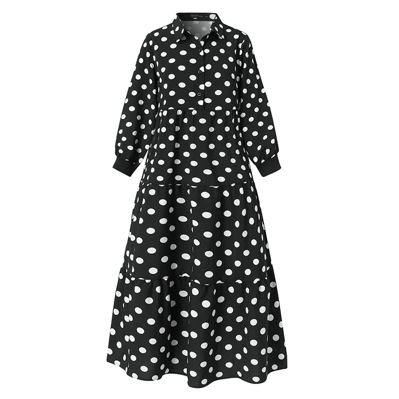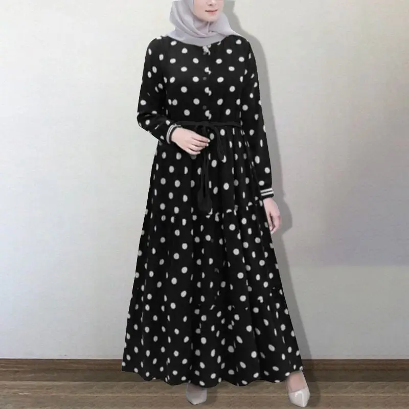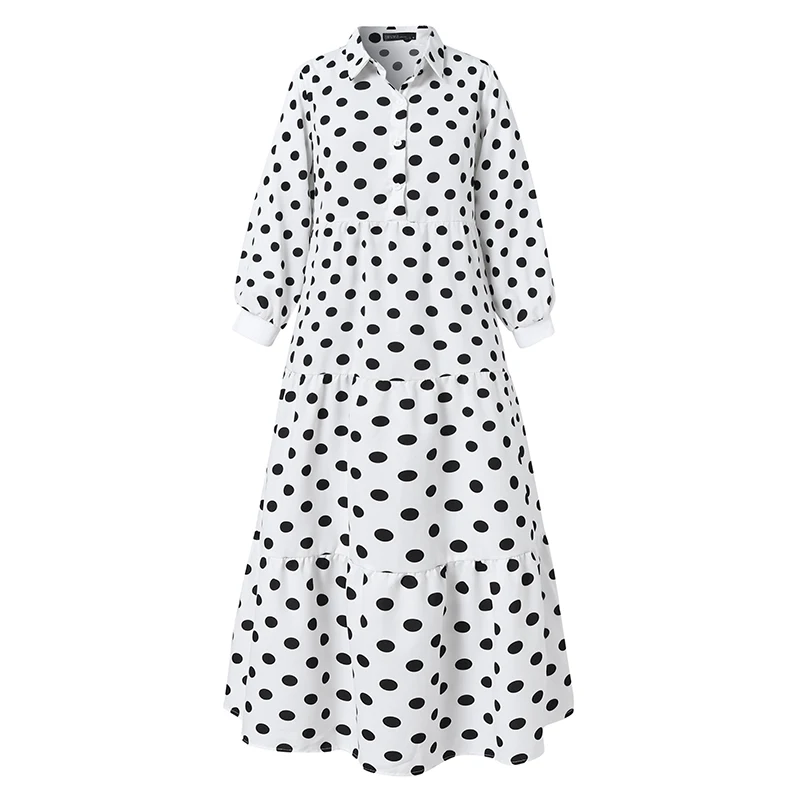 Женский сарафан в горошек ZANZEA 2022, элегантное мусульманское платье с принтом, рубашка с пышными рукавами, платья, женское платье Дубай, абайя