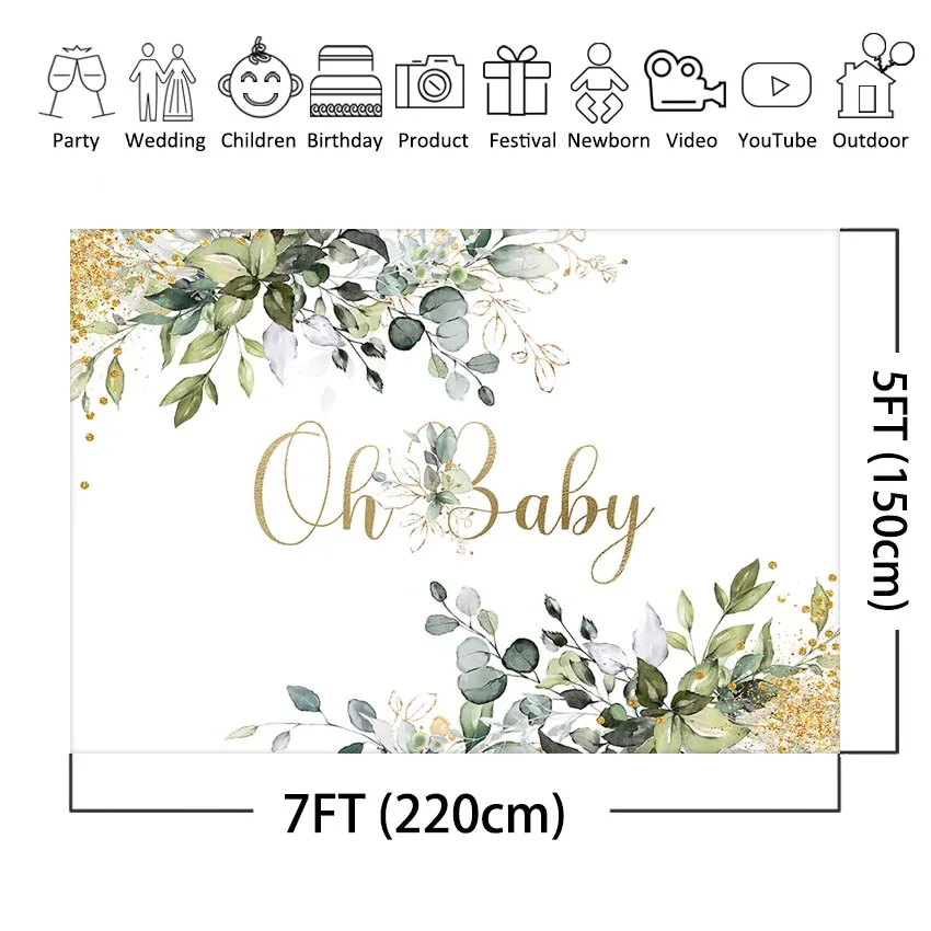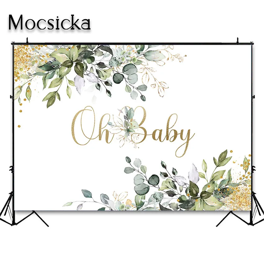 Mocsicka с надписью Oh Baby фон для вечеринки будущей матери зелени джунглей Пол нейтральной золото зелеными листьями вечерние украшения фон для фотосъемки