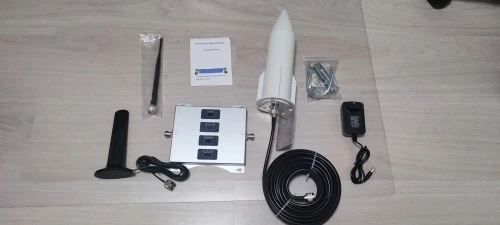 Усилитель получил из Китая, а не со склада в России, поэтому продавец в подарок положил 20 метров кабеля вместо 10. Продавец отправил усилитель двумя посылками. В одной внешняя, внутренняя антенна и кабель, в другой сам усилитель с блоком питания и ещё одна внутренняя антенна. Коробки были помяты, но внутри все цело. Проверил, скорость мобильного интернета, поднялась в 3 - 5 раз. Думаю это не предел, т. к. проверял в городской квартире и антенны распологались в одной плоскости, хотя и через три бетонные стены. Надеюсь в деревне все заработает ещё лучше, когда антенны будут разнесены по высоте.