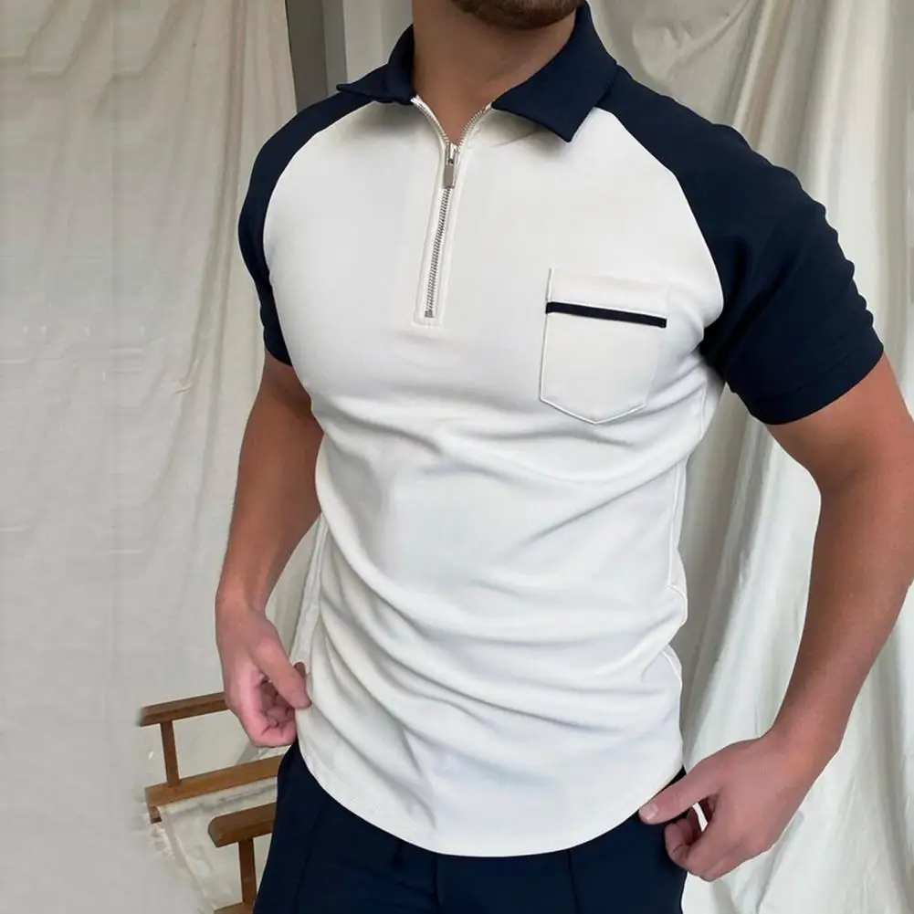 Новая стильная Летняя мужская повседневная футболка с цветным блоком на молнии, летний Свободный Топ с отворотом и карманом для свиданий