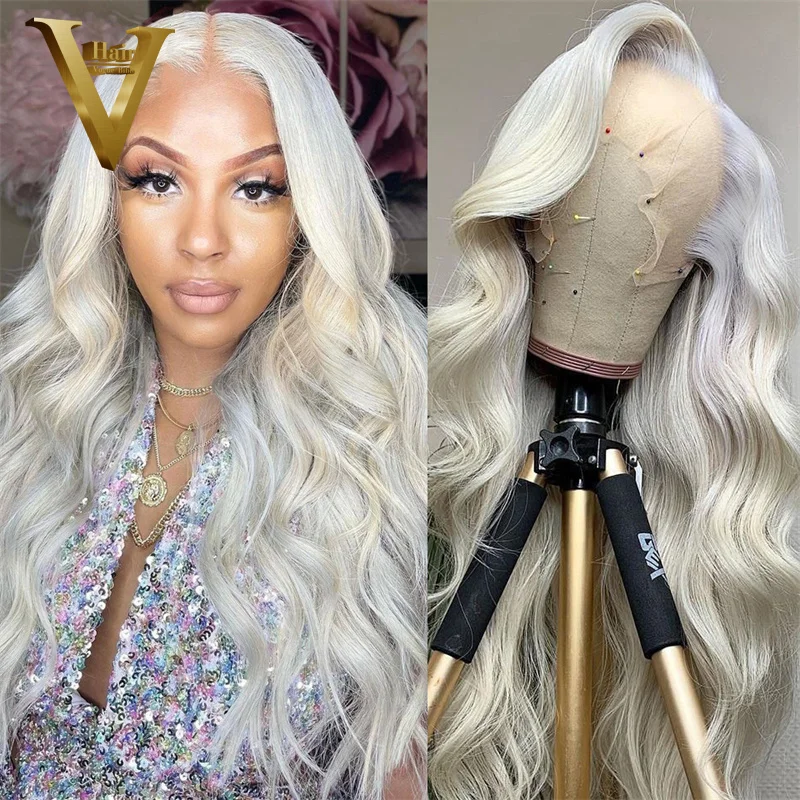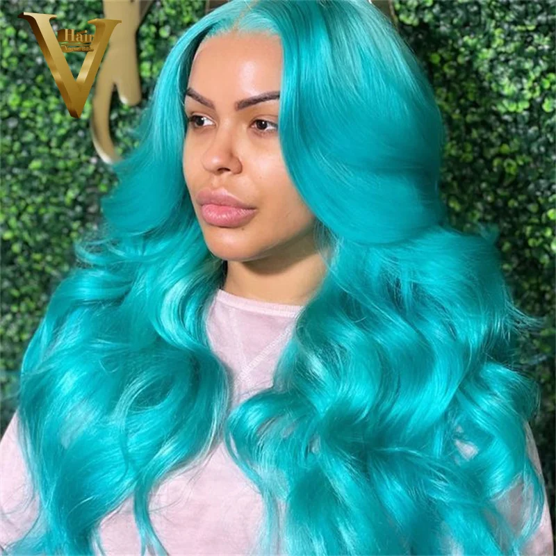 Платиновый блонд, человеческие волосы, парики для тела, волнистые кружевные передние парики, бразильские волосы Remy 13x4, кружевные передние парики al, розовые, зеленые, цветные парики для женщин