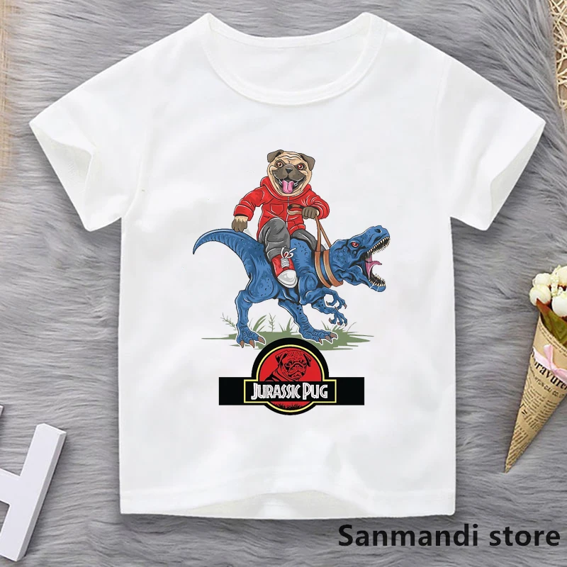 Футболка детская с принтом парка Юрского периода, мопса, верховой езды, динозавра, летняя модная футболка