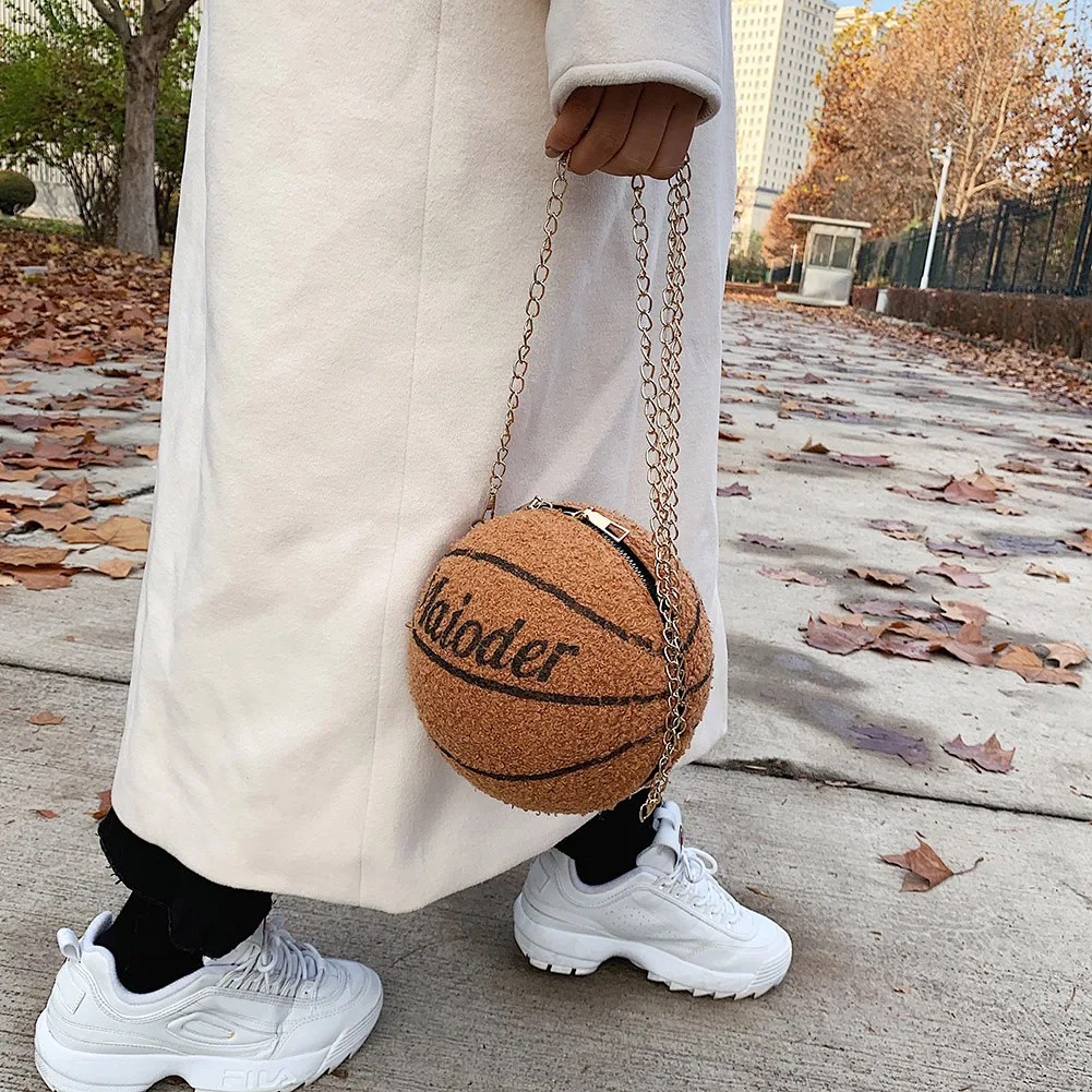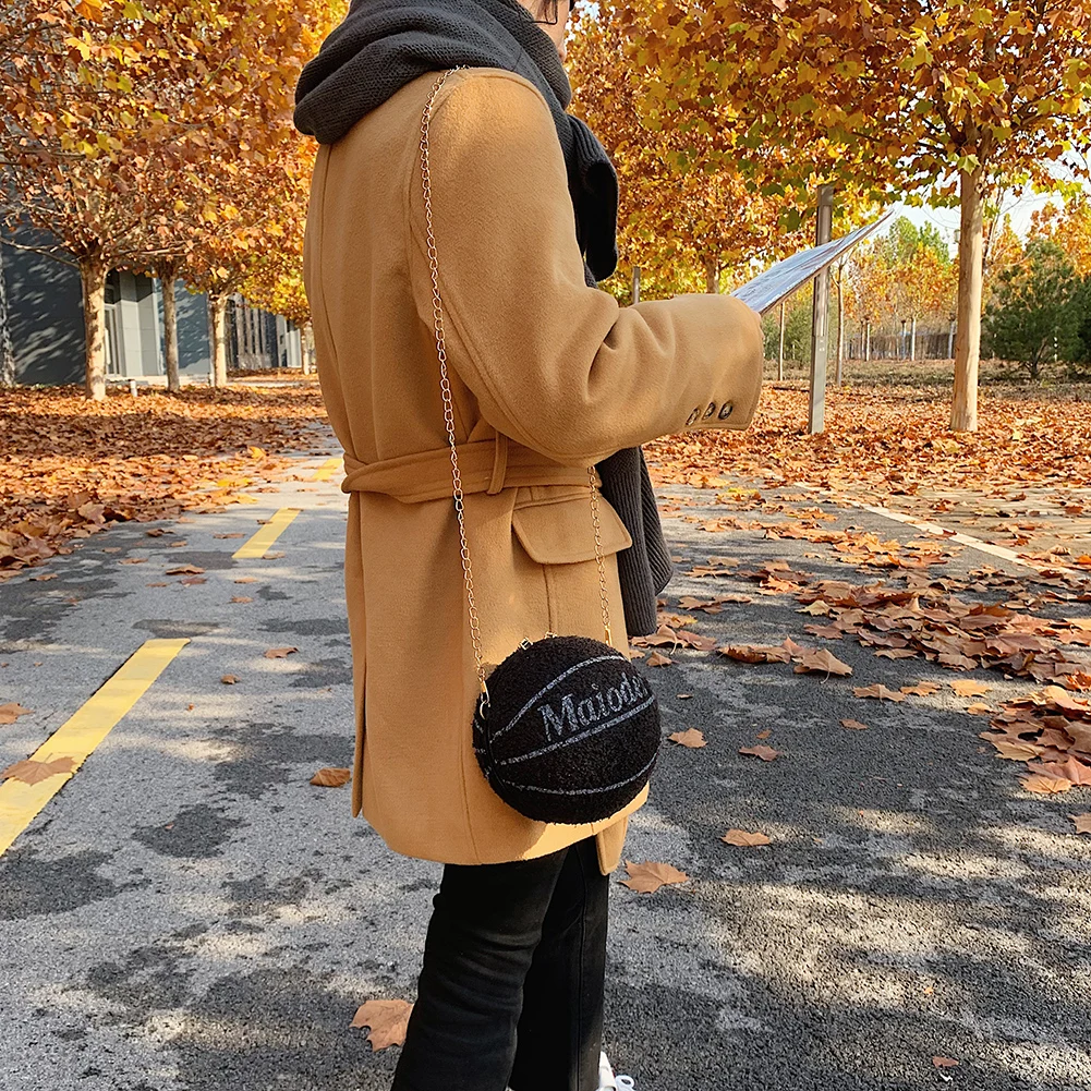 Модный клатч на плечо в форме шара для женщин, плюшевая женская сум...