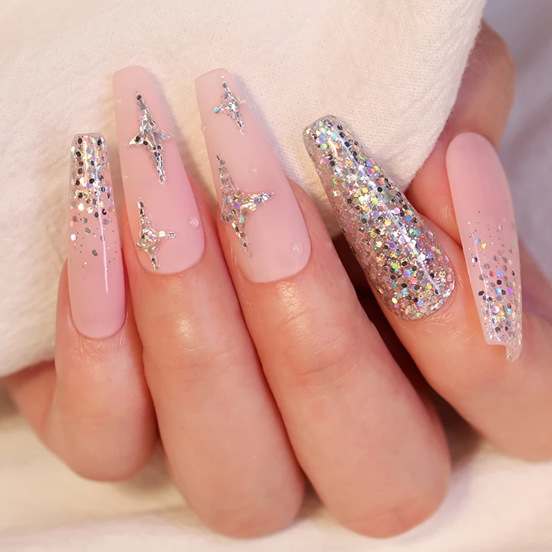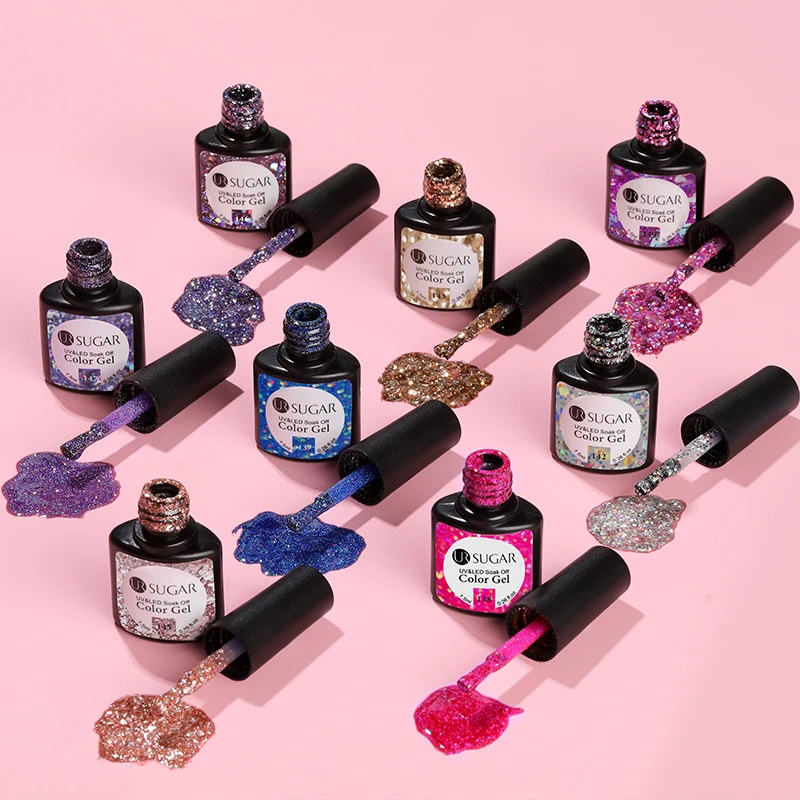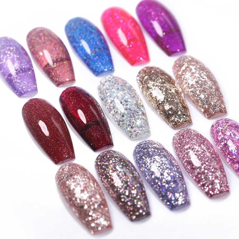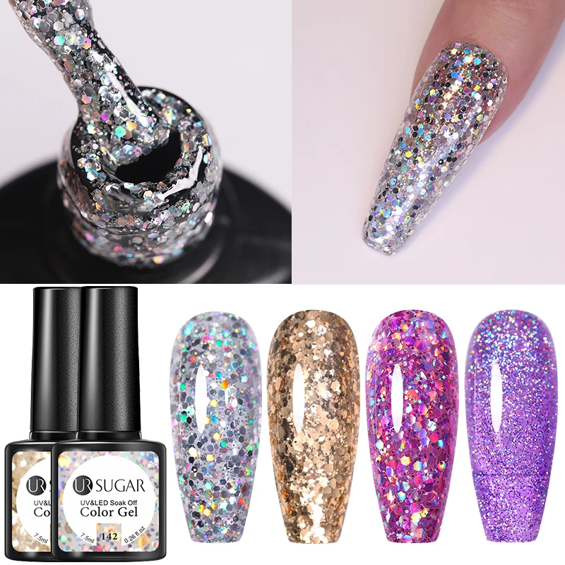 Гель-лак для ногтей, серебристый, блестящий, с блестками, 7,5 мл
