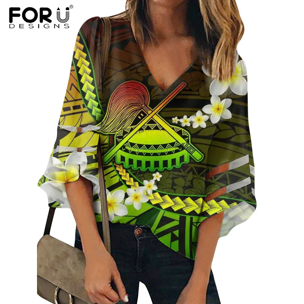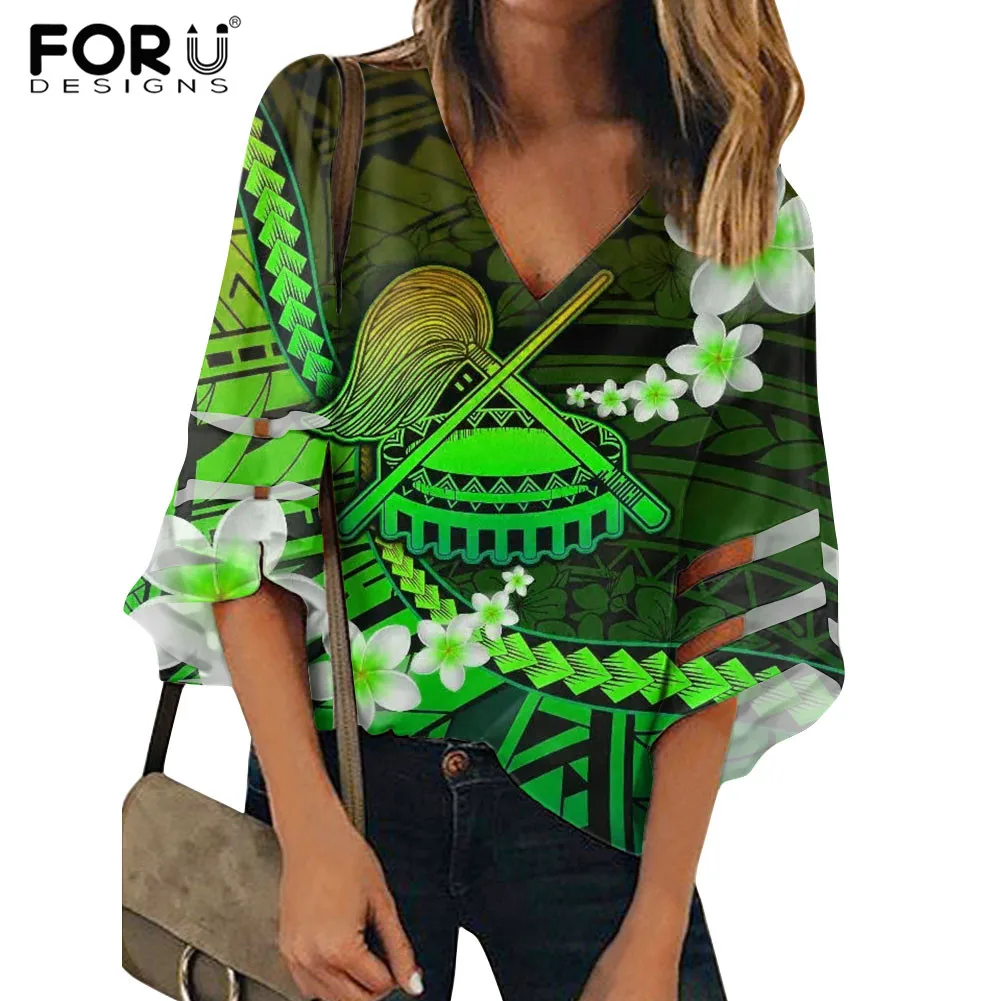 FORUDESIGNS, полинезийская Самоанская летняя Свободная рубашка с принтом Plumeria для женщин, повседневные сексуальные дышащие топы с коротким рукавом