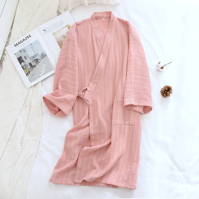 Ночная рубашка МужскаяЖенская, из чистого хлопка, в полоску