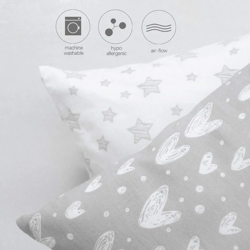Дизайн Застежки-конверта: из-за застежки-молнии волосы ребенка или ребенка жевать молнию. Наволочка для малышей не имеет застежек-молний, но имеет дизайн конверта для оптимального комфорта и удобства надевания или вынимания подушки.
